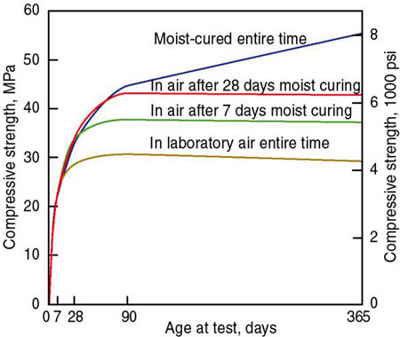 Figure 1. Moist Curing Time and Compressive Strength Gain